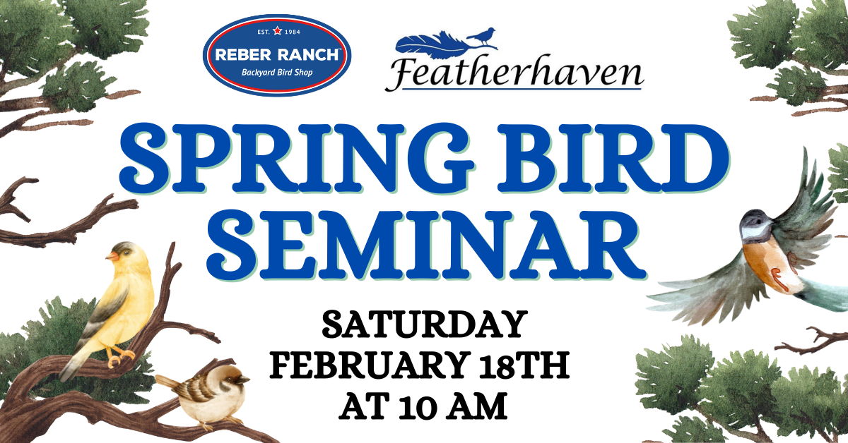 Join Reber Ranch in welcoming Lance Smith from Featherhaven Songbird Rehab for this free seminar on the Spring Backyard Habitat: The Basics for Songbird Needs. All attendees will receive a special coupon and be entered in a raffle!