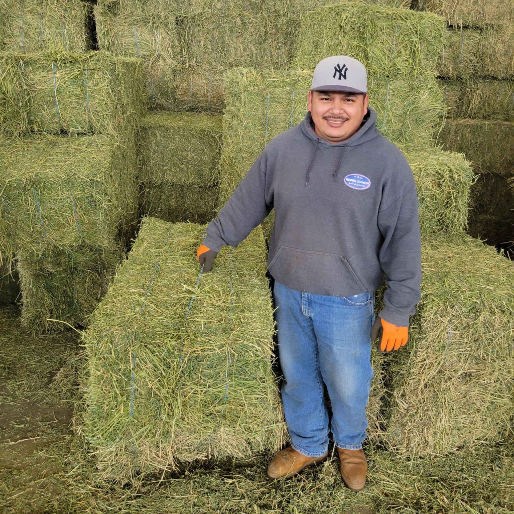 Eduardo has been at Reber Ranch for 9 years now, and worked a variety of jobs before becoming a hay delivery driver. Eduardo appreciates many aspects of his job at the Ranch, including the variety of the work day to day and getting to be outside. Eduardo likes to spend time watching his son play soccer when he’s at work.